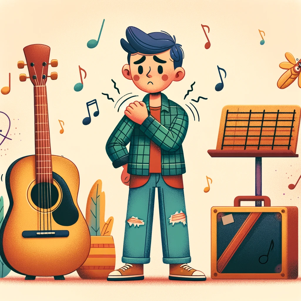 原因はわかってる。肩こりと背中痛。なるべく手元を見ないようにしてるのだが、長いことギターを弾くとね。X JAPANのhideもかなりひどかったらしい。ちなみにこのイラストはChatGPTに「ギターの練習しすぎで肩と背中が凝ってるイラスト描いて」で描いてもらった。