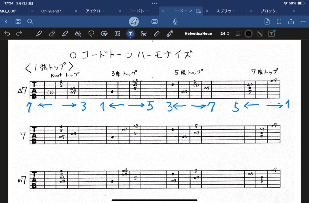 YouTubeのジャズギターの先生から動画の補助教材を入手して苦しみ中。スケールはだいぶ慣れてきたが何よりきついのはコード。パワーコードとはアプローチが違う。各コードトーンをトップノートにするというどうしてこれを瞬時に押さえられるのか謎すぎる![]()