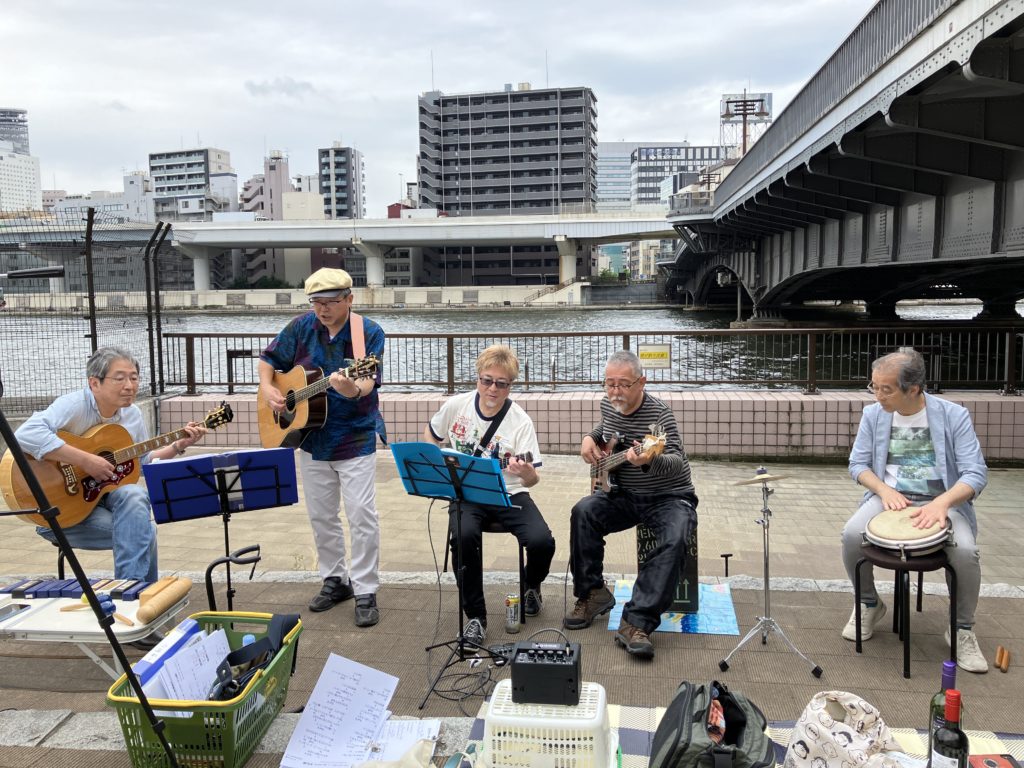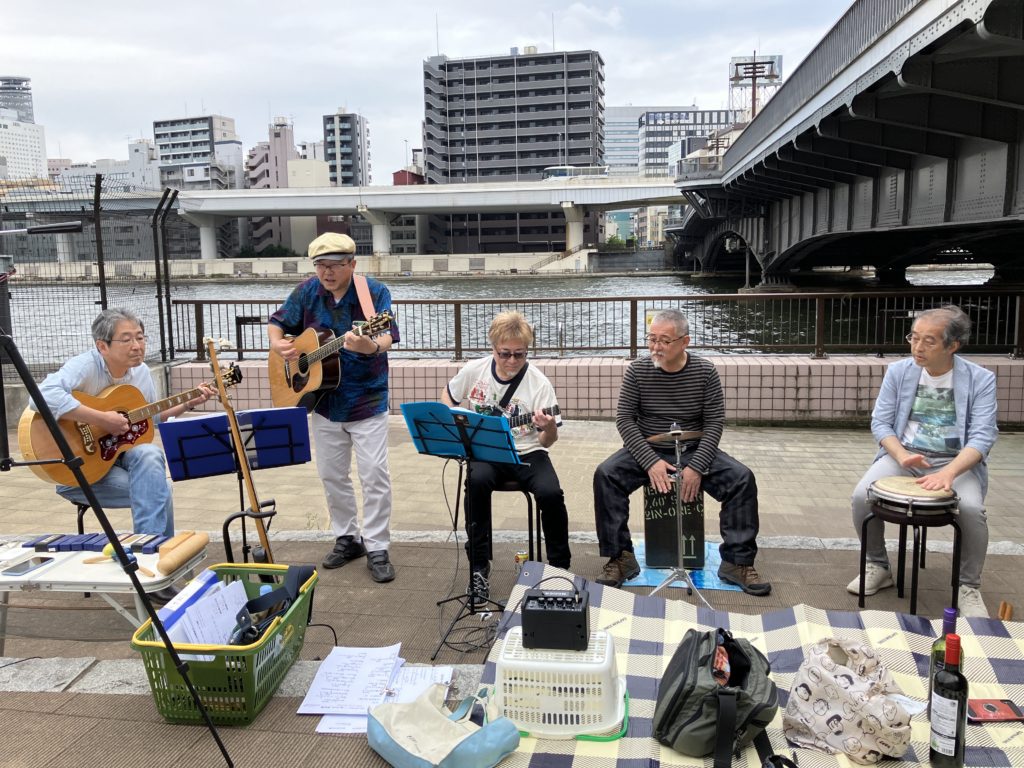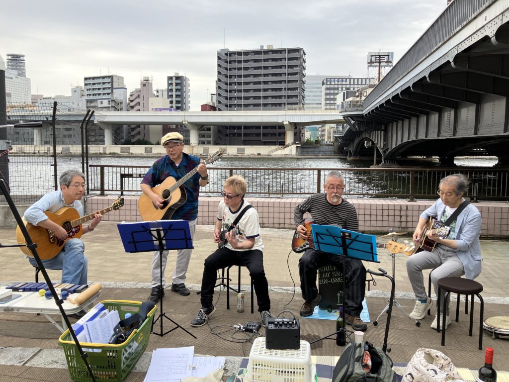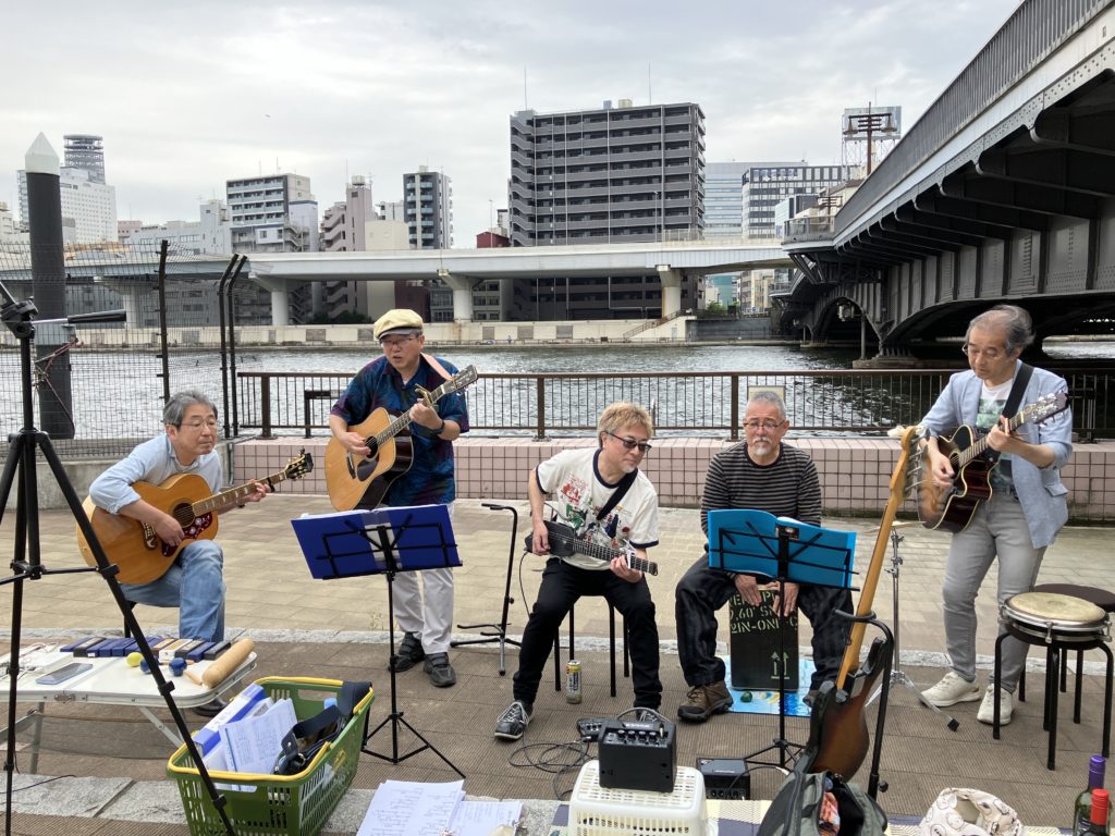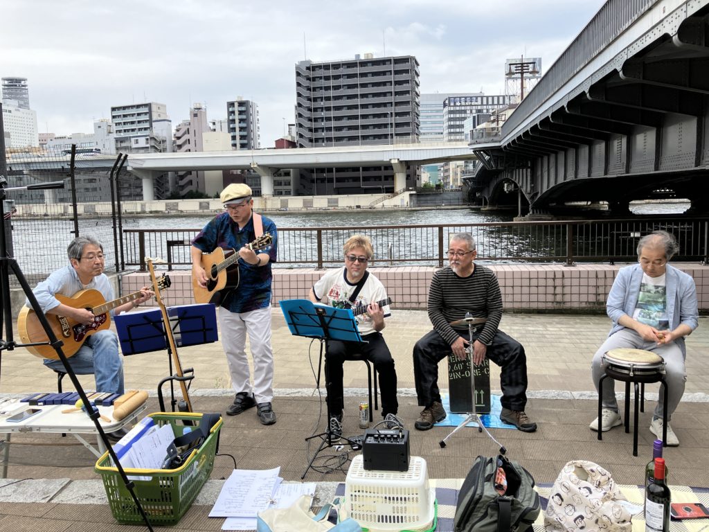 GW最終日ギター会 日記 X Facebook はてブ LINE コピー 2024.05.06 まぁやっぱり楽しかったわ。ひさしぶりの両国橋たもとの隅田川リバーサイドギター会。GW最終日! ぎり雨に降られなかった!!!☂ 弾きにくいトラベルギターに.007の弦で相当きつかったが笑🎸 またやりたい! 参加者募集中!!!