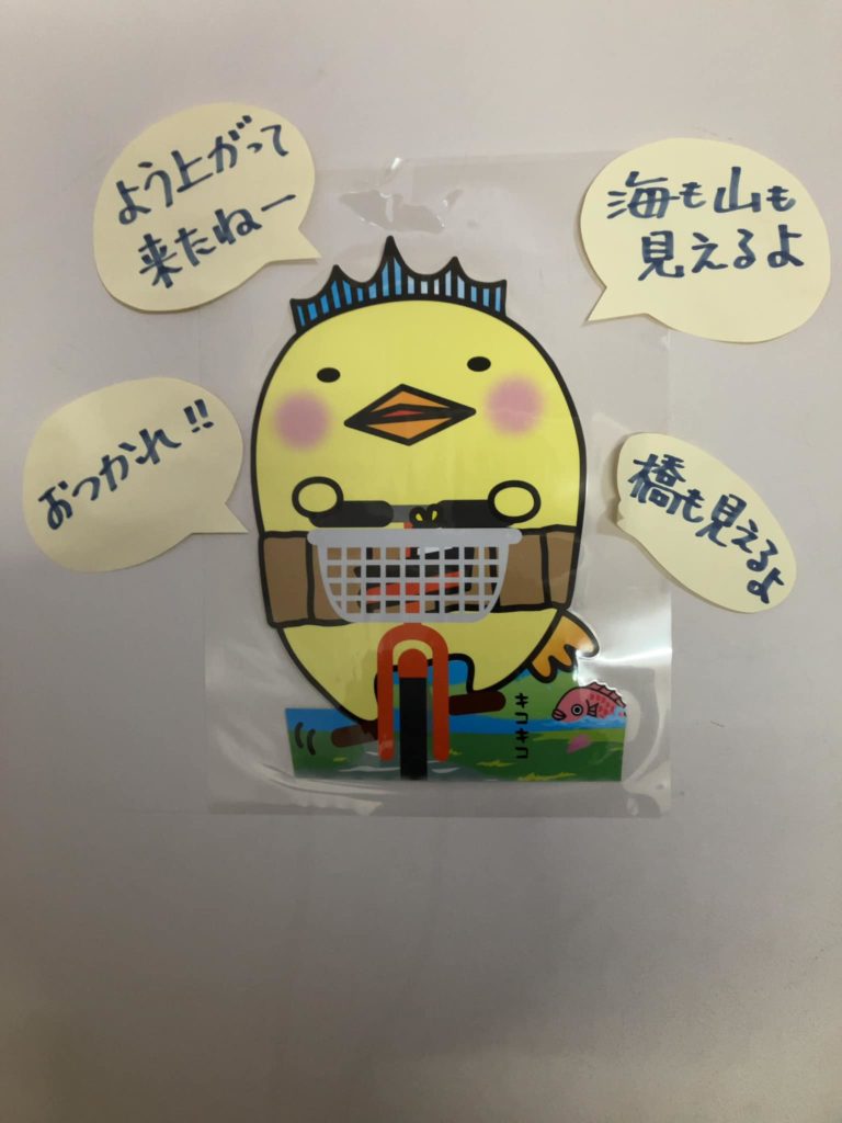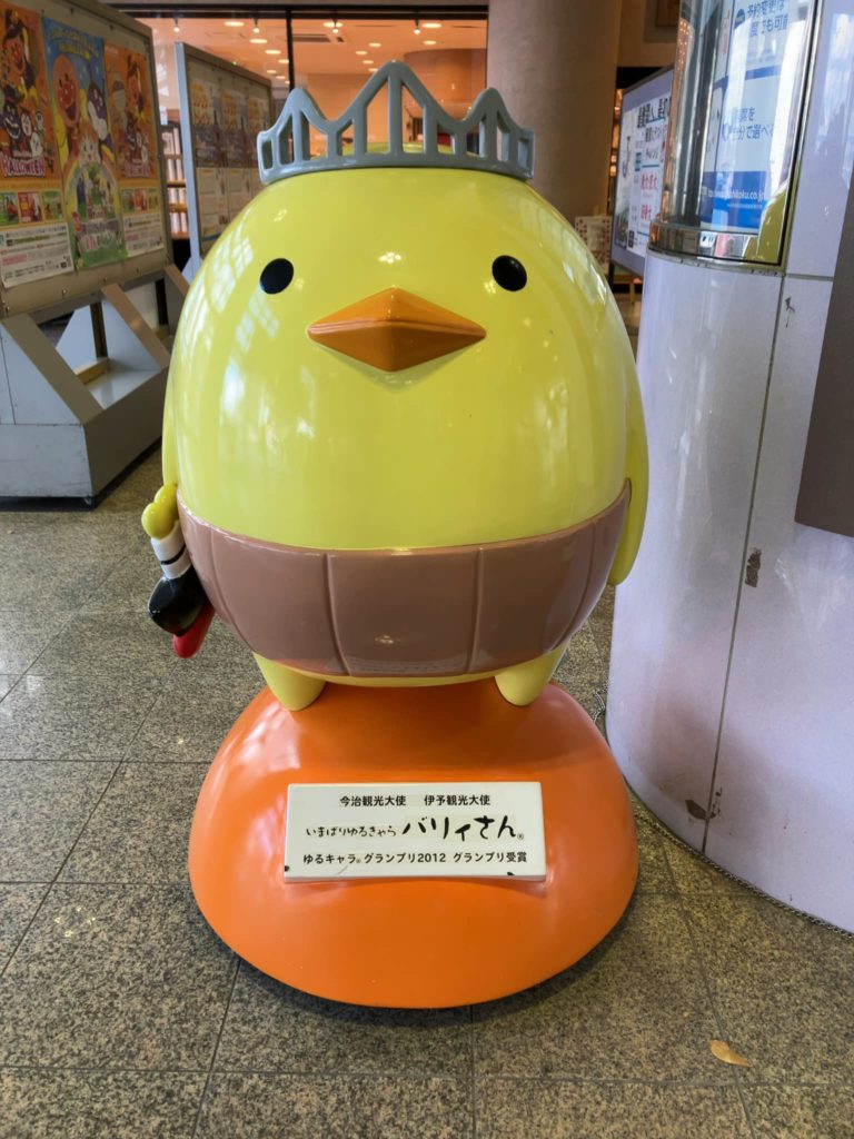 今治城の6階展望台まで死にそうになりながら登ったら今治市のゆるキャラ「バリィさん」にほめてもらった。