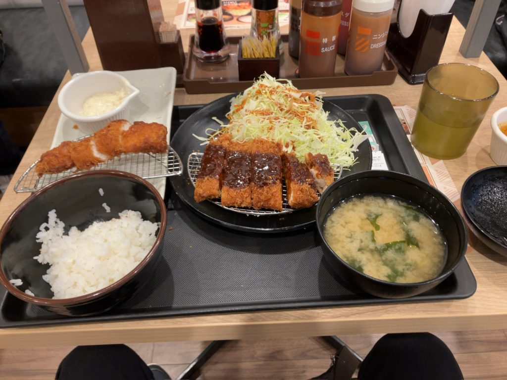 ひさしぶりにトンカツ気分。地元の松のやはいつも激混みで2駅離れた店に行くのだが本日は違う路線で2駅。やはりそこも午前中なのに混み混み。外の食券販売機に並んでたら中でトンカツ食べているオジサンが俺に向かって身振り手振りでなにかを訴えている。(・_・???? 「店の中にも食券販売機あるよ!」と教えてくれていたらしい。入って誰もいない食券販売機で買う。オジサンにお礼を言ったらうれしそうだった。いまや松屋とかでがっつり食うとゆうに1000円超えるなかやはりコスパいいよな。基本カツオンリーだが。しかも朝メニューはさらにコスパよくなる。残念ながら俺の定番は味噌カツ定食+ササミカツなので朝メニューにはない。以前たまにあった夜勤仕事の帰りはぜったいに早朝そのメニューを食べて帰るのが定番だった。職場の後輩からは「なんで味噌カツにさらにササミカツをそえるんですか?」と言われていて「食べたいからだよ」と言っていたのだが実は引退間際はかなりきつくてでもキャライメージを保つためにササミ添えは守っていた笑 本日も添えたが本日は余裕( ̄ー ̄) 二口くらい食べてから思い出して写真とったのですまん。