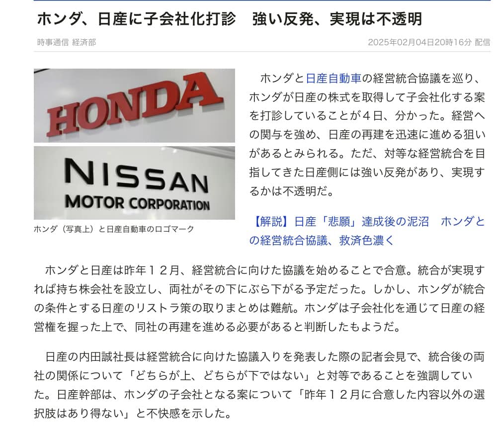 10年くらい前からこうなるのではと思ってたから衝撃ではないのだが夢を見ているようだなあ。もっと早く始まってたら変わってたのか? でもこれは日本の最後のワンチャンかもしれないよ。そーいえばソニーのカドカワ買収話はどうなった?テレビ局も吸収合併とかに進むのか?そんな中でも血を流して変化に対応してきてる企業もあるのだよな。日産の態度がやっぱ日産。