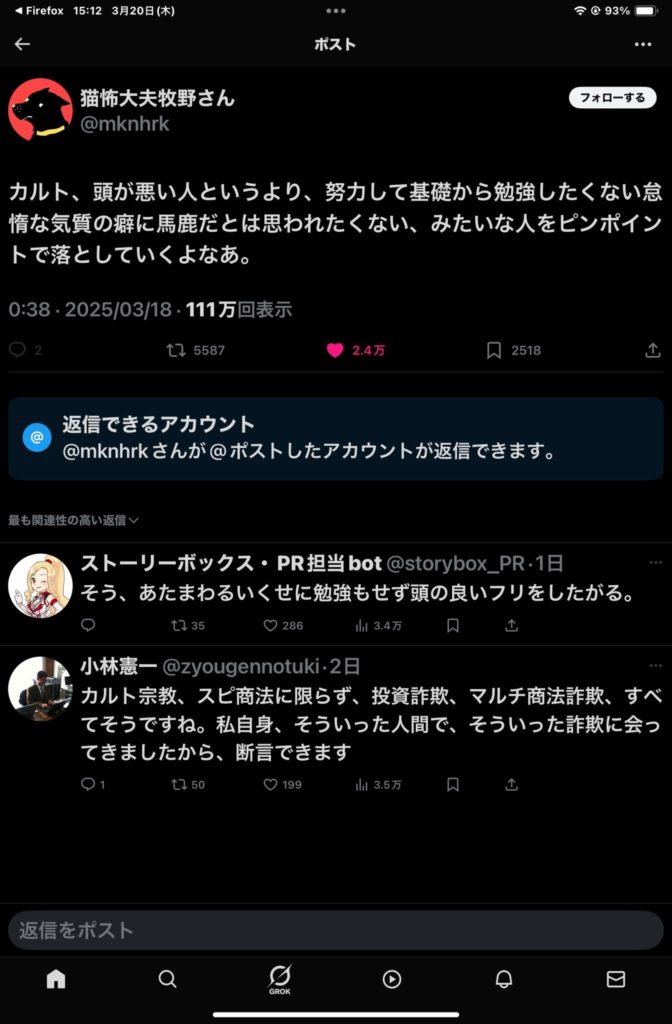陰謀論もそういうことだよな。あと日常生活、仕事や趣味でもいるよこういう人たち。おはよう世界。